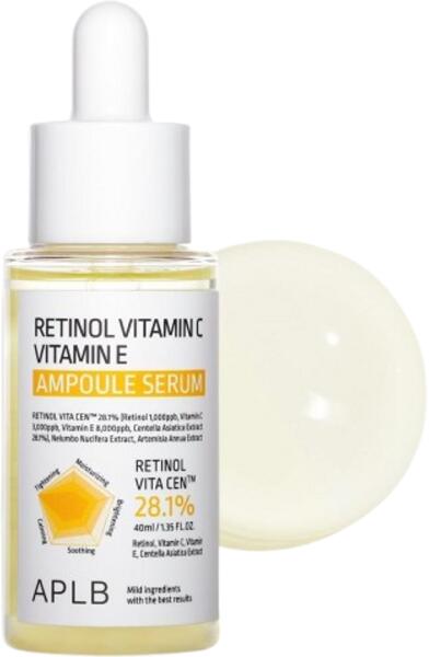 APLB Retinol Vitamin C Vitamin E Ampoule Serum — egy öregedésgátló ampullás szérum, amely egyesíti a retinol és antioxidánsok hatását a komplex bőrápolás érdekében. Fő tulajdonságok: