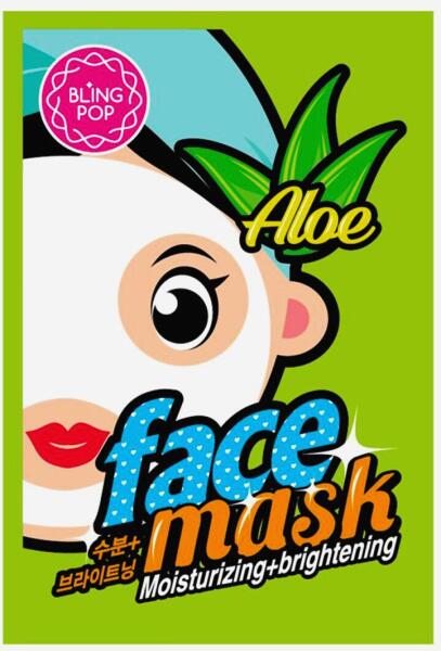 Blingpop maszk, táplál és ragyogást ad aloe vera-val, 20 ml Aloe kivonatot tartalmaz, amely hidratáló tulajdonságokkal rendelkezik, így a bőr puha és feszes lesz. Összetevők: Aqua, glicerin, metilpropándiol, fenoxietanol, poliszorbát 80, Aloe Barbadensis levél kivonat, etilhexilglicerin, nátrium-hialuronát, xantán gumi, dinátrium-EDTA, 1,2-hexándiol, tokoferil-acetát, parfüm, arginin, Paeonia Lactiflora mag kivonat, Convallaria Majalis hagyma/mag kivonat, Magnolia Kobus ág/virág/levél kivonat, Lilium Candidum virág kivonat, Ipomoea Purpurea kivonat, butilén-glikol.