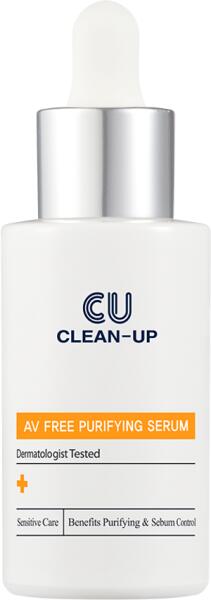 CUSKIN Clean-Up AV Free Purifying Serum — szeboreguláló szérum problémás bőrre, amely az intenzív zsírosság és gyulladások fő okai ellen hat. A szabadalmaztatott Anti Sebum P komplex és a piridoxin (B6-vitamin) segítségével csökkenti a faggyútermelést, összehúzza a pórusokat és enyhíti a gyulladásokat. Hatás: – csökkenti a bőr zsírosságát és fényét– összehúzza a pórusokat és megelőzi azok eltömődését– csökkenti a gyulladást és irritációt– helyreállítja a hidrolipid réteget– intenzíven hidratál Fő összetevők: – Anti Sebum P — gátolja a faggyúmirigyek aktivitását, szabályozza a zsírosságot és a pórusok méretét– Piridoxin (B6-vitamin) — 56%-kal csökkenti a zsírosságot, összehúzza a pórusokat, gyulladáscsökkentő hatású– AF-T komplex — csökkenti a gyulladást, nyugtat és erősíti a bőrt– Édesgyökér gyökér izolátum — gyorsan csillapítja az irritációt és erősíti az ereket– Ceramid NP, hidrolizált lecitin — helyreállítja a lipidgátat és megtartja a nedvességet– Hidroxi-etil-karbamid, allantoin, arginin — mélyhidratálást biztosít Használat: