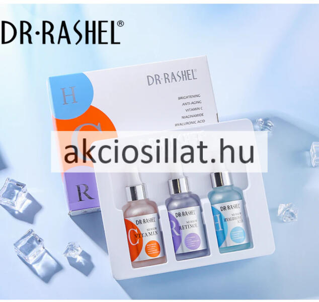 DR Rashel Complete Facial Serum Set – Intenzív bőrápolás minden napra Fedezd fel a DR Rashel Complete Facial Serum Set hatékonyságát, amely három prémium minőségű arcszérumot kínál a tökéletesen ápolt, ragyogó arcbőrért. A gondosan összeállított szett különféle bőrproblémák célzott kezelésére lett megalkotva, így minden bőrtípus számára ideális választás. A napi arcápolási rutin tökéletes kiegészítője, amely egyszerre hidratál, fiatalít és élénkíti a bőrt. A szett tartalma és hatása Vitamin C Serum 30ml – Könnyed textúrájú, ragyogásfokozó szérum, amely segít csökkenteni a pigmentfoltokat és egységesíti az arcbőrtónust. Az antioxidánsokban gazdag formula erősíti a bőr természetes védekezőképességét, miközben friss, üde megjelenést biztosít. Retinol Serum 30ml – Hatékony öregedésgátló szérum, amely serkenti a bőrmegújulást, csökkenti a finom ráncokat és feszesíti a bőrt. Ideális választás azok számára, akik szeretnék visszanyerni bőrük fiatalos rugalmasságát és simaságát. Hyaluronic Acid Serum 30ml – Intenzív hidratáló szérum, amely mélyen feltölti a bőrt nedvességgel, ezáltal puhává és teltté varázsolja. Segít megőrizni a bőr természetes egyensúlyát, miközben enyhíti a szárazság és feszülés érzését. Jellemzők és előnyök