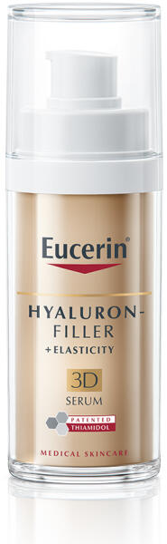 A bőrgyógyászati kezelések által ihletett Eucerin Hyaluron-Filler + Elasticity 3D szérum egy könnyed és hidratáló öregedésgátló szérum, amely hatékonyan kezeli a bőr öregedésének 3 dimenzióját:
