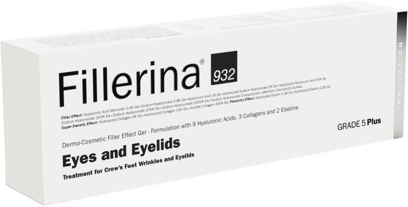 Fillerina 932 Szem- és szemhéjak kezelése, Grade 5 Plus, 15 ml A Fillerina 932 szem és szemhéj 9 különböző típusú hialuronsav keverékéből áll, amely nagy mértékben behatol a bőrrétegekbe (ex vivo teszt a Franz sejtekkel): ezáltal elősegíti a ráncok és szövetek kitöltő hatásának fenntartását és a szemhéj átalakítását. A hialuronsav-molekulák hatását 3 típusú kollagénmolekula és 2 típusú, különböző molekulatömegű elasztin-molekula egészíti ki. Javaslatok: Nagyon mély libaláb ráncok és a szemhéjak súlyos leeresztése esetén. Használati útmutató:Javasoljuk, hogy naponta kétszer, reggel és este vigye fel a gél elosztásával, hagyja, hogy a hatóanyagok 2-3 percig hatoljanak, majd masszírozzon a konkrét applikátor segítségével. Kivitel: 15 ml-es, lezárt üveg speciális applikátorral, ujj alakú csúccsal.