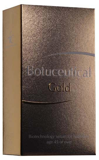 Biotechnológiai ránctalanító szérum érett bőrre. A Botuceutical Gold biotechnológiai szérum négy peptid egyedülálló kombinációja, amelyet a 45 éves kor feletti, érett bőr ápolására fejlesztettek ki. A szérum kíméletes alternatívája a botulotoxin injekciónak. Használata biztonságos és nem okoz fájdalmat. Előnye, hogy a kötőszövet megsértése nélkül alkalmazható, tehát nincs szükség injekciós beavatkozásra. Továbbá a négy peptiden kívül DMAE-t, hialuronsavat, liposavat és aranyszemcséket tartalmaz, amely a bőrnek egyedülálló, ragyogó tónust kölcsönöz. A bőr rugalmassá, feszessé és életerőssé válik. Használata: Tiszta és száraz arcbőrre, ráncról-ráncra haladva vigye fel a szérumot és körkörösen masszírozza be. Arcunkon a száj körüli ráncokkal kezdjük, majd az orr körül felfelé haladva folytassuk egészen a szemöldökig. A folyamatot ismételjük meg a szem környékén és a homlokon is. A látható hatás érdekében, használjuk a szérumot a lágy kontúrokra és a ráncokra legalább 30 napon keresztül naponta kétszer (reggel és este), majd naponta egyszer, hogy megőrizzük bőrünk fiatalságát.