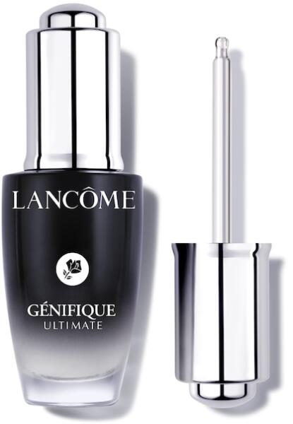 A Lancôme Génifique Ultimate szérum segít a bőr általános minőségének javításában illetve kettős hatásának köszönhetően visszafordíthatja a bőrkárosodás jeleit. A benne található béta-glükán CM, hialuronsav, édesgyökér kivonat, valamint az ikonikus pre- és probiotikus összetevők együttesen erősítik és regenerálják a bőr védőrétegét, miközben hatékonyan segítenek küzdeni az öregedés látható jelei ellen. Innovatív technológia: 27 év kutatás, 10 szabadalom és 90 trillió béta-glükán minden egyes cseppentőben. Tökéletes kialakítás: cseppentő a megfelelő mennyiségű adagoláshoz és újratölthető 50ml-es formátum.