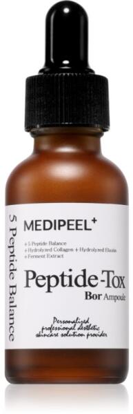 Medi - Peel Peptide-Tox, 30 ml, arc szérumok nőknek, Úgy érzi, hogy bőrének többre van szüksége, mint amit a krémek nyújtanak? A kiváló Medi - Peel Peptide-Tox arcszérum tökéletes kiegészítője bőrápolási rutinjának – kényezteti és intenzív ápolásban részesíti bőrét. A magas hatóanyag-koncentrációnak köszönhetően sokkal erőteljesebben és gyorsabban fejti ki hatását, mint egy arckrém. Ráadásul folyékony állaga megkönnyíti az alkalmazást, és nagyon jól beszívódik a bőrbe. Tulajdonságok: segít kisimítani a ráncokat és a finom szarkalábakat erősíti az arckontúrt hatékonyan hidratál és táplál nem tömíti el a pórusokat finomít Használata: Gyengéden ütögessen be az ujjaival megfelelő mennyiségű szérumot a tiszta arcbőrébe. Vigye fel az arcára, nyakára és a dekoltázsára is. Folytassa az arcápolást kedvenc nappali/éjszakai arcápolójával.