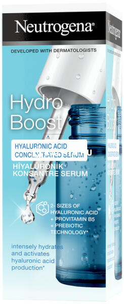 Ez a koncentrált szérum a Neutrogena Hydro Boost termékcsalád legmagasabb hialuronsav-koncentrációjával rendelkezik. A hialuronsav mellett 100%-ban növényi eredetű trehalózt és B5 provitamint tartalmaz, amelyek azonnal hidratálják és belülről tölti fel a bőrt. Illatanyagmentes formulája gyorsan felszívódik, nem hagy zsíros érzetet, és nem tömíti el a pórusokat. Rendszeres használatával a bőr hidratáltabbá, rugalmasabbá és egészségesebb megjelenésűvé válik.