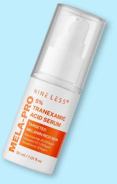 A NINE LESS márka terméke 5% tranexaminsavat tartalmaz, amely csökkenti az öregségi foltok és a pattanások utáni hegek megjelenését.