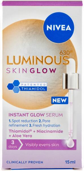 A Nivea® Luminous630® Skin Glow Szérum a Nivea® első arcápolója, amely célzottan kezeli a ragyogás több dimenzióját: