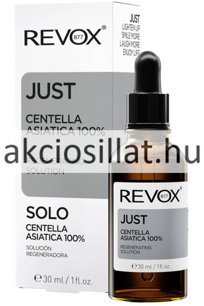 Revox Just Centella Asiatica 100% Arcszérum 30ml Nyugtató arcápoló megoldás, amely segíti a bőr regenerálódását és természetes egyensúlyának és hidratáltságának helyreállítását. Az agresszív külső tényezők irritálhatják és károsíthatják a bőrt. A Centella asiatica kivonat a bioaktív anyagok és aminosavak erőteljes forrása, amelyek segítenek feltölteni, megnyugtatni és hidratálni a bőrt.