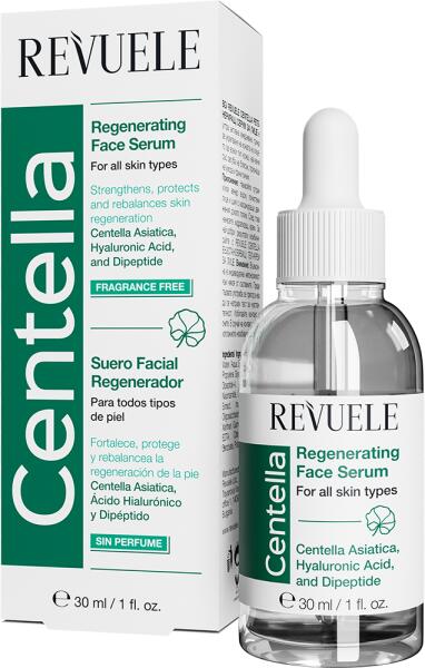 Revuele Centella szérum Egy ultra-aktív bőrerősítő szérum minden bőrtípusra, fakó arcbőrrel, fáradtság jeleivel és finom vonalakkal. A CICA-t (Centella Asiatica) és hialuronsavat tartalmazó gazdag formula mélyrehatóan hidratálja a bőrt és fokozza a bőrjavító funkciót. A dipeptid infúzió serkenti a bőr regenerálódását és segít megvédeni a bőr korai öregedésétől. A szérum kiegyenlíti az arcszínt, helyreállítja a bőr fényét és rugalmasságát. Összetevők: Water / Aqua, Sodium Hyaluronate, Propylene Glycol, Butylene Glycol, Dipeptide-4, Vitamin B3 / Niacinamide, Centella Asiatica Leaf Extract, Inulin, Alpha-Glucan Oligosaccharide, Phenoxyethanol, Xanthan Gum, Betaine, Disodium EDTA, Citric Acid, Sodium Benzoate, Potassium Sorbate.