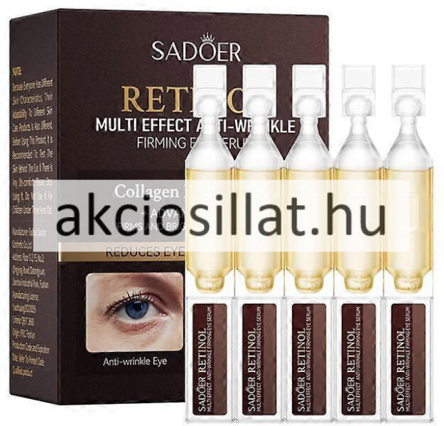 Sadoer Retinol Multi-Effect Szemkörnyékápoló Szérum 15x1.5ml A szérum erőteljes öregedésgátló hatással rendelkezik: feszesíti a szemkörnyéki bőrt, csökkenti a ráncok és redők mélységét, küzd a szarkalábak ellen és simítja a bőrt.