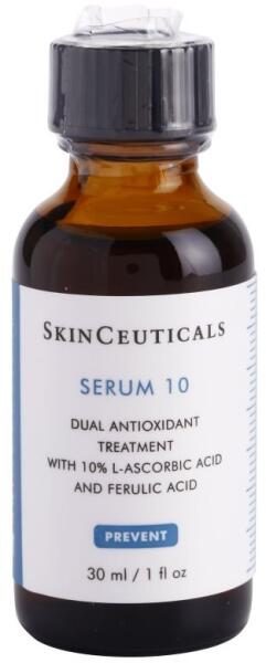 Skinceuticals Prevent Serum 10, 30 ml, arc szérumok nőknek, Úgy érzi, hogy bőrének többre van szüksége, mint amit a krémek nyújtanak? A kiváló Skinceuticals Prevent Serum 10 arcszérum tökéletes kiegészítője bőrápolási rutinjának – kényezteti és intenzív ápolásban részesíti bőrét. A magas hatóanyag-koncentrációnak köszönhetően sokkal erőteljesebben és gyorsabban fejti ki hatását, mint egy arckrém. Ráadásul folyékony állaga megkönnyíti az alkalmazást, és nagyon jól beszívódik a bőrbe. Tulajdonságok: segít kisimítani a ráncokat és a finom szarkalábakat védi az arcbőrt a káros külső hatásokkal szemben alkalmas érzékeny bőrre Összetétel: C-vitamin – antioxidáns védelmet nyújt a szabad gyökök okozta károsodások ellen, hatékony a pigmentfoltokkal szemben, kiegyenlíti a bőr tónusát és növeli a bőr ragyogását, elősegíti a kollagéntermelést, ezáltal lassítja az öregedési folyamatot parfümmentes Használata: Vigyen fel 4-5 cseppet a megtisztított bőrre, és alaposan masszírozza be.