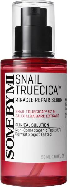 Some By Mi Snail Truecica Miracle Repair Serum Leírás: A Some By Mi Snail Truecica Miracle Repair Serum egy kivételes szérum, amely kímélően gondoskodik a bőrödről. A csigaváladék és a Truecica egyedi kombinációja serkenti a bőr gyógyulását, csökkenti a gyulladást és segít megszabadulni a pattanásoktól. Emellett elősegíti a bőr hidratáltságát és rugalmasságát, így bőröd egészséges és ragyogó marad. Fő összetevők:
